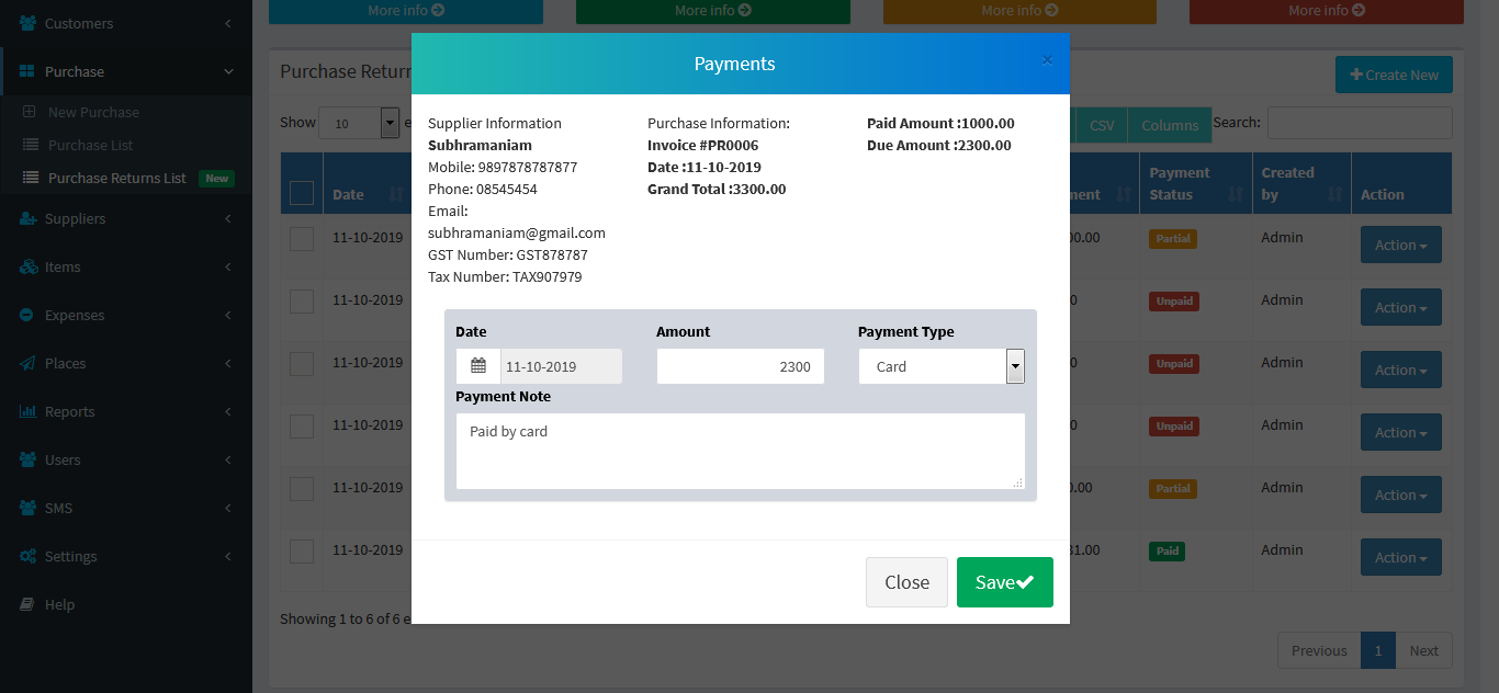 Adding a Suppliers it's a very easy task. Enter Supplier name, Mobile, Phone, Email, GST Number, TAX Number,