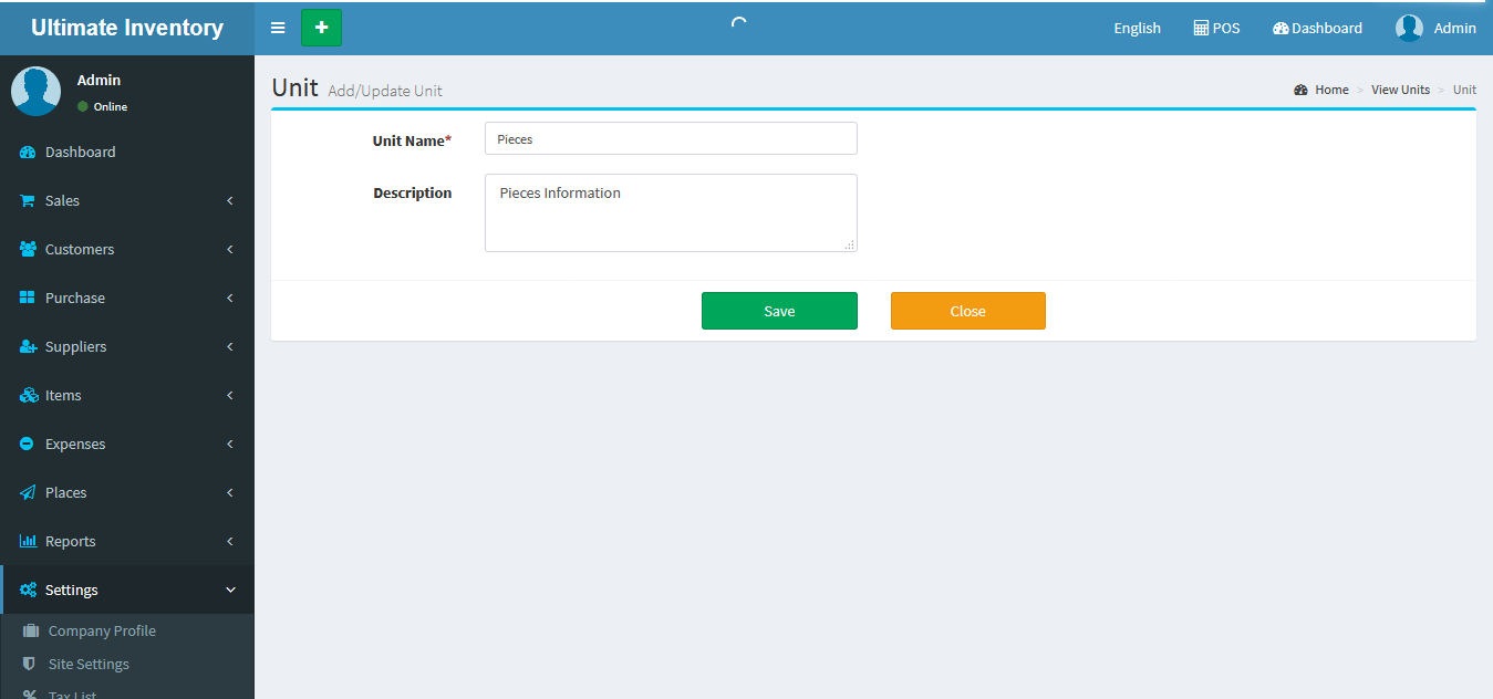 Adding a Items it's a very easy task. Enter Item name, Select Category, Unit, SKU(Optional Field), Alert Quantity(Optional field), Select Image(Optional field),Purchase Price(Without Tax), Select Tax, Tax Type(Inclusive / Exclusive), Profit Margin(in Percentage %) , Available/Current Stock(+/-) (Optional Field), Add Lot number(Optional), Expired Date(Optional) and click on Save button.